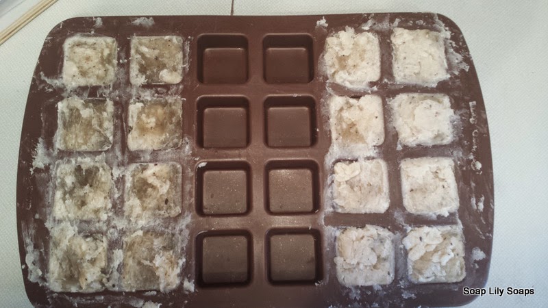 And here they are in the mold together. Unscented on the left, scented on the right.